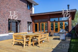 В свою очередь, из веранды есть два выхода - один на открытую зону барбекю с деревянным настилом из лиственничной террасной доски и газовым грилем из нержавейки, второй на участок.