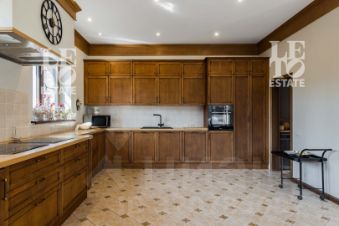 Гостиная граничит с не менее просторной кухней столовой, оборудованной необходимой техникой. К кухне примыкает постирочная.