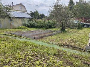 На участке имеется часть жилого дома, возможно временное проживание пока построите новый дом, а также гараж. Коммуникации: магистральный гaз, электричество 15 кв заведены в дом. Есть колодец.