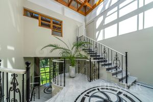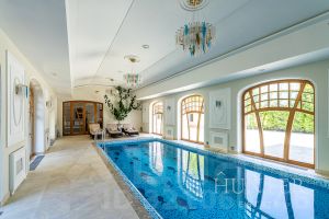 - Первый этаж: холл, кабинет, гостиная со вторым светом и камином, кухня-столовая с выходом на террасу, с/у. Зона СПА: бассейн, бильярдная с баром, боулинг.
