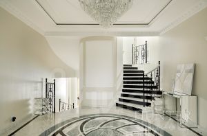 - Второй полуэтаж: мастер спальня с малой гостиной, выходом на балкон, гардеробной и ванной.