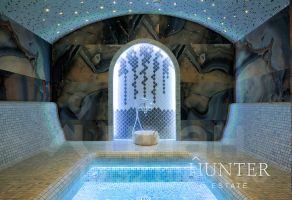 В доме организована СПА-зона, с бассейном имеющим выход на открытую террасу, сауной, хамамом, бильярдной, баром, и полноценным боулингом. На втором этаже СПА, расположена гостевая зона, с двумя спальнями и с/у.