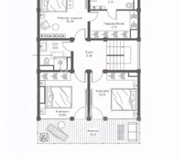 Второй этаж: мастер-спальня с гардеробной и санузлом, детская комната с балконом, гостевая комната с балконом, кабинет с балконом, санузел.