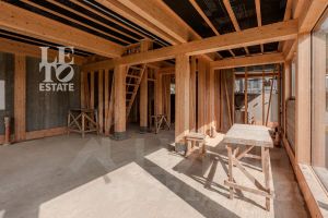 Планировка дома продумана до мелочей. На первом этаже располагается просторная гостиная с обеденной зоной, кухня, кладовая комната, санузел и котельная с отдельным отдельным выходом на улицу. По всему периметру дома предусмотрена терраса, где можно устраивать уютные вечера на свежем воздухе.