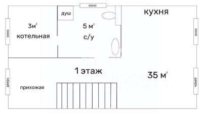 1 эт. : кухня-гостиная, с/у , топочная , прихожая.