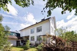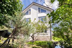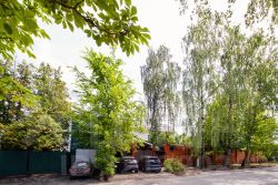 На участке расположены два гаража, гостевой дом общей площадью 70 кв.м и дом для персонала общ. Площадью 60 кв.м., крытая площадка для парковки, зона барбекю и ландшафтный пруд.