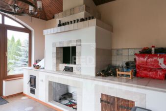 Отделка выполнена из натуральных материалов: камень, массив дерева.