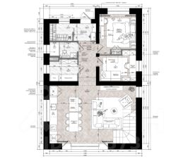 Кухня-гостиная 42 м² с выходом на тёплую террасу 30 м²