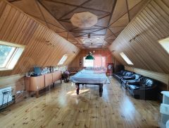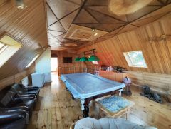 Жилой дом выполнен из бруса, на первом этаже расположены 2 просторных гостиных, спальня, кухня, санузел, на втором этаже - 3 спальни. Также на участке имеется баня-сруб, которую также можно использовать как гостевой дом. На первом этаже - парная, моечная, кухня-гостиная, комната отдыха, санузел, на втором этаже - бильярдная, комната отдыха, санузел. Летняя кухня оснащена газовой плитой, всей необходимой мебелью и мангальной печью. Электричество, скважина на воду, септик, магистральный газ.