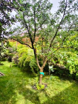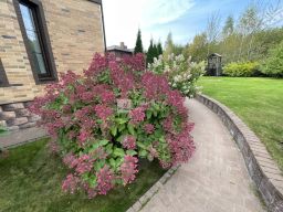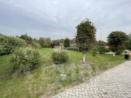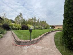 Высажены фруктовые и декоративные деревья и кустарники. Дорожки и парковка для автомобилей вымощены брусчаткой толщиной 6 см.