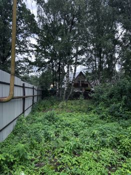 Просторный, ровный участок, огорожен забором, центральные коммуникации — электричество, газ, водопровод по границе участка.