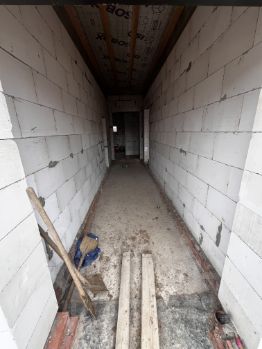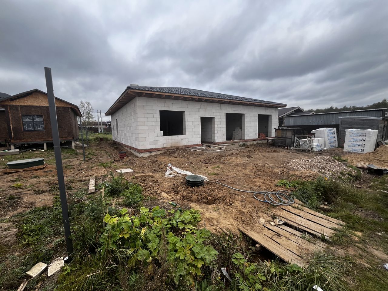 На территории расположен фундаментальный жилой дом общей площадью 115 квадратных метров ("коробка"). На данный момент строение возведено до уровня крыши без внутренней отделки и коммуникаций внутри здания. Состояние "коробки" хорошее, выполнены все основные строительные работы, обеспечивающие возможность быстрого завершения строительных мероприятий.
