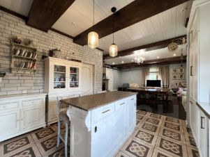 В доме современный ремонт. Под красивым керамогранитом теплые водяные полы. Вентиляционные короба облицованы шпонированными панелями. В лаунж зоне дизайнерская плитка в восточном стиле. Камин в гостиной из голландского кирпича. Дом продается с встроенными мебелью и техникой.