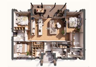 Вокруг — три спальни: уютная мастер-спальня с гардеробной и две дополнительные комнаты, которые можно превратить в детские или рабочие кабинеты.