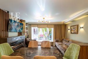 Дом оформлен в классическом архитектурном стиле и построен в пять уровней. Внутри выполнена дизайнерская отделка с использованием премиальных материалов, установлена качественная мебель и техника от ведущих европейских производителей.