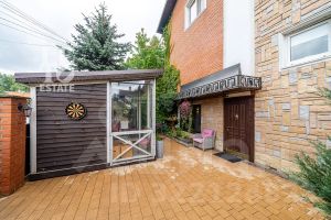На благоустроенном участке (1,96 сотки) разбит уединённый внутренний двор. Здесь, в тени деревьев, обустроена крытая терраса с зоной барбекю — идеальное место для тёплых вечеров в кругу семьи и друзей.