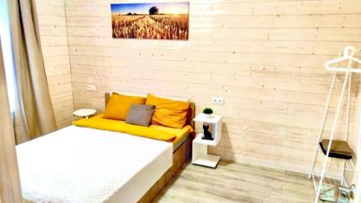 Площадь дома 98.6 кв м .В доме оборудованы две спальни, уже стоят новые кровати с комфортными матрасами. Третью спальню при желании