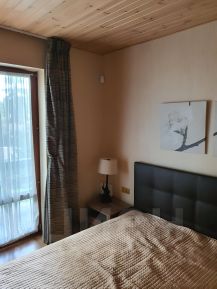 В доме два этажа - на первом этаже прихожая с большой гардеробной, просторный холл с электрокамином, кухня, санузел с душевой кабиной и сауной, подсобное помещение (бойлерная) и одна спальня; на втором этаже три спальни (одна с балконом), кабинет и санузел с полноразмерной ванной.