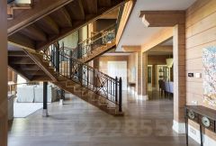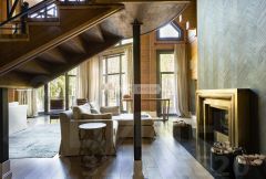1 этаж: Прихожая, гардеробная, су, гостиная с камином и вторым светом, кухня-столовая с выходом на просторную террасу с видом на лес, кабинет с камином и выходом на просторную террасу, мастер зона: холл, спальня с выходом на террасу, ванная комната, 2 гардеробные;