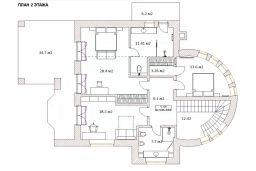 2 этаж: три спальни с балконами, санузел, кабинет/сауна.