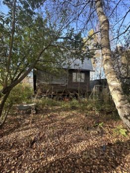 На участке расположен садовый дом площадь приблизительно 50 кв.м. состоит из двух этажей. Дом щитовой, установлен на сваях. На первом этаже терраса, две комнаты, лестница на второй этаж. На втором этаже одна комната.