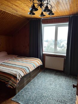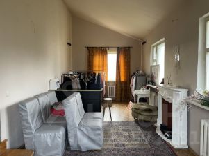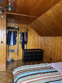 2 этаж: 2 спальни, кабинет и ванная комната. Между 1 и 2 этажами большая комната свободного назначения - площадь комнаты порядка 30м2, высота потолка по одной стене - 4м.
