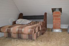 Дом представляет собой двухэтажную баню, которая возведена из бревенчатого бруса на надежном ленточном фундаменте, сделана каркасная пристройка на буронабивных сваях, всё объединено под одной крышей. Канализация и водопровод заведены в здание, для горячего водоснабжения установлен бойлер.