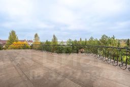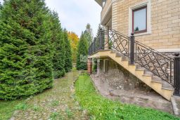 Также имеется гараж на три автомобиля и квартира для персонала. Участок обустроен с многоуровневым ландшафтным дизайном, с высаженными вдоль дорожек елями и туями. Всего в минуте ходьбы находится яхт-клуб и Клязьминское водохранилище, а до МКАД всего 5 минут на автомобиле.