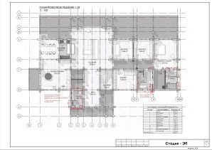 Прихожая, гардеробная, гостевой санузел, гостиная с камином и выходом на большую террасу, кухня столовая с выходом на террасу, мастер-блок с гардеробной и санузлом, две детский спальни, кабинет, санузел.
