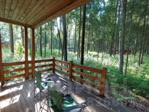 соток с лесными деревьями и новый дом 170 кв.м. с панорамными окнами и видом на лес.
