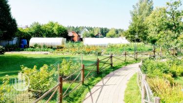Ухоженный участок с плодовыми деревьями: яблони, груши, сливы, вишни; кустарники: смородина, ежевика, малина и пр.; прекрасный огород, теплица.