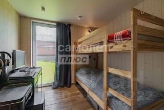 Дом построен с учетом инсоляции: панорамные окна выходят на южную сторону, что позволяет рационально использовать отопление. Установлена вся необходимая мебель и бытовая техника для комфортного проживания, а также оборудована сауна с дровяной печкой, которая может выполнять функцию камина в гостиной. На мансардном этаже располагается лаунж зона, которая сейчас используется, как детская игровая. Планировка дома: прихожая, санузел, кухня-гостиная, 2 спальни, сауна, мансардный этаж, антресоль-кладовая, терраса.