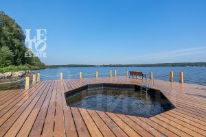 Прекрасная, объемная гостиная с с камином и видом на водохранилище, каждая спальня -со своим санузлом и гардеробной, мастер-блок площадью более 60 кв.м. со своей теплой террасой, из которой открывается завораживающий вид на воду, в цокольном этаже расположена зона спа с бассейном и многофункциональные помещения. Из гостиной и кухонной зоны есть выход на террасу с зоной отдыха и барбекю, которая располагается по периметру всего дома.