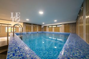 Цокольный этаж: зона отдыха с кухней, бассейн, сауна, хамам, душевая, санузел, котельная, постирочная, подсобные помещения, квартира для персонала с отдельным входом;