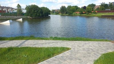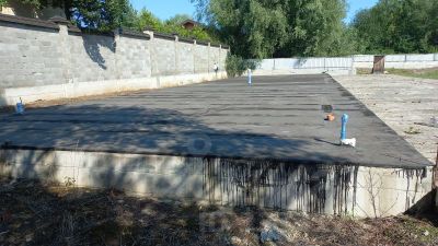 Участок огорожен, по периметру сделан фундамент под капитальный кирпичный забор. На участке находится фундамент под хозблок (можно сделать гаражи, мойку, жилье для обслуживаюжего персонала) размером 36м•9м. Участок ровный.
