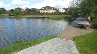 Рядом с участком магазины всех групп товаров, кафе, аптеки, недалеко 2 больших ТЦ. Рядом автобусная остановка (идет 12 мин до метро).