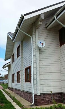 Коттедж сделан из клеёного бруса по финской технологии с ремонтом под ключ в состоянии заезжай и живи. Первый этаж представляет собой большую кухню — гостинную 36 кв.м, две спальни, два санузла и вспомогательные помещения. Второй этаж включает четыре спальни, просторную видовую застекленную лоджию, два санузла и вспомогательные помещения. Все помещения с евроремонтом укомплектованы мебелью и техникой.