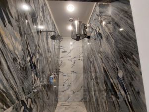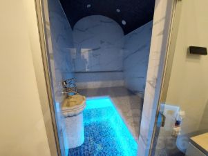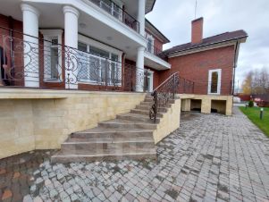 Основной дом 1040 кв.м: 8 спален каждая оборудована санузлом и гардеробной, кухня-столовая-гостиная, гостиная с камином и вторым светом, кабинет, спортивный зал, бассейн 4х8, хамам, кинотеатр, бильярдная, помещения для хранения продуктов, кухня для обслуживающего персонала все помещения оборудованы отдельными санузлами.