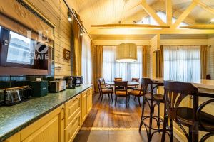 На ухоженном земельном участке 18,02 соток высажены плодовые деревья и декоративные растения, дорожки вымощены натуральным камнем. Дополнительный дом для персонала и навес для автомобиля с помещением для хранения хозяйственного инвентаря добавят комфорта и удобства в повседневной жизни.
