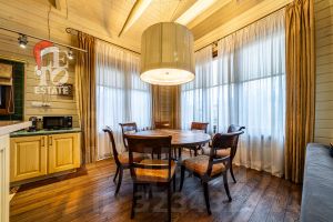 Дом построен из клееного бруса 150х200 мм, что гарантирует прочность, долговечность и экологичность. Свайно - ленточный фундамент и мягкая черепица на крыше обеспечивают надежность и защиту от внешних воздействий.
