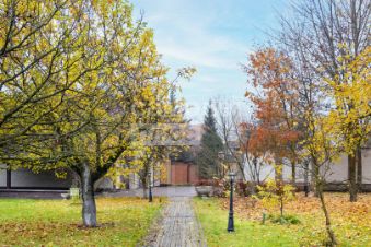 На первом этаже расположен гараж на два автомобиля (ворота с подъемными механизмами), места для хранения имущества и оборудованная мойка, отдельное помещение - обустроенная мастерская для любителей поработать руками, небольшая кладовая для садового инвентаря, помещение технического назначения оборудованный тепловой узел с коммуникациями и оборудованием газоснабжения, два автоматических котла Де Дитрих ( Германия) по 72 КВт каждый (ТУ на газ - 140 КВт); электрическим вводом на 15 КВт, водоподготовкой и водоочисткой, бойлер на 300 литров (все необходимое для жизнеобеспечения дома и участка ресурсами, с возможностью увеличения для обеспечения нового домовладения), прекрасная большая терраса 8 х 5 метров (которую возможно обустроить, как часть гостевого дома или пространство для барбекю.