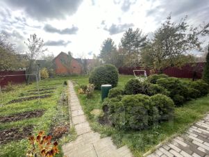 Участок (10 соток): ухоженный сад с плодовыми растениями и декоративными цветами, а также пространство для уютного отдыха (газон).