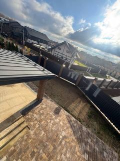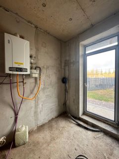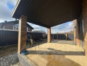 Для его строительства был использован керамоблок и облицовочный кирпич, кровля двускатная Кликфальц с утеплителем - 20 см. Есть подкровельное пространство, которое можно использовать под разводку приточно-вытяжной вентиляции по дому. Подготовлены выводы под кондиционеры внутри дома. Выстроены все межкомнатные перегородки. Установлены качественные стеклопакеты.