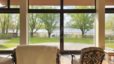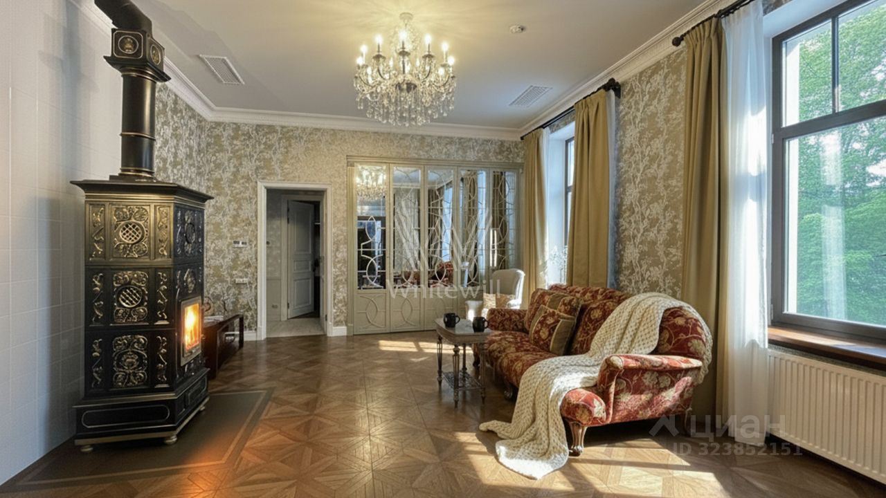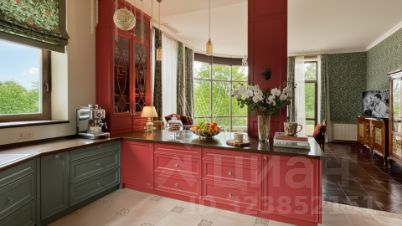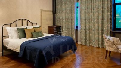 Отделка выполнена с использованием премиальных и экологичных материалов. Интерьеры гармонично продолжают оформление экстерьера: спокойные и глубокие тона, яркие акценты, обои с растительным орнаментом, второй свет и роскошные камины-печки. Дом полностью укомплектован комфортной мебелью и встроенной бытовой техникой.