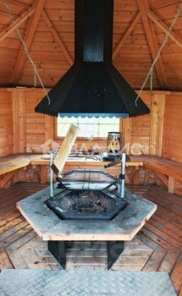 В центре участка — уникальный финский чум с грилем для жарки и копчения рыбы и мяса