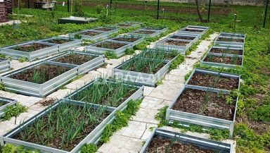 Благоустроенный внутренний двор: декоративные грядки, плодовые деревья, кустарники, цветы