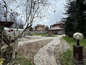 На территории есть летняя кухня, банный комплекс, гараж, пруд, многовековые деревья, за всем тщательно следят помощники и ухаживают. Все окружено зеленью и ландшафтным дизайном.