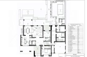В доме выполнено большое количество внутренних строительных и отделочных работ и состояние доведено до финишной отделки: выполнены перегородки, оштукатурены и подготовлены под финишную покраску стены, выполнена вся разводка инженерных коммуникаций по дому, отлита лестница по всем трем этажам, пол- на первом этаже и в санузлах снабжен водяным обогревом, выполнена и разведена по дому приточно вытяжная вентиляция. На цокольном этаже установлена отдельная вентиляция для организации климат-контроля в зоне бассейна. На первом этаже на полу уложен керамогранит, санузлы доведены до 90%-ной готовности, установлены встроенные части сантехнического оборудования. На втором этаже также готовы санузлы, уложен паркет и декоративный камень. По дому проведена вся электрика и установлена система "умного дома". Закуплены все внутренние двери, закуплена вся кухня с техникой и мебелью .