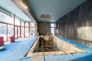 В доме предусмотрено отдельное крыло со СПА зоной, включающей бассейн (оборудование закуплено и частично установлено), сауной (закуплена), купелью (установлена) и мини-кухней. В СПА зоне также готовы санузлы, выложена плитка и декоративный камень.