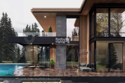 1 этаж: прихожая, гардеробная, кабинет, кухня, гостиная-столовая с выходом на большую террасу, санузел, кладовая, гостевая комната с санузлом и гардеробной, гараж на 2м/м;